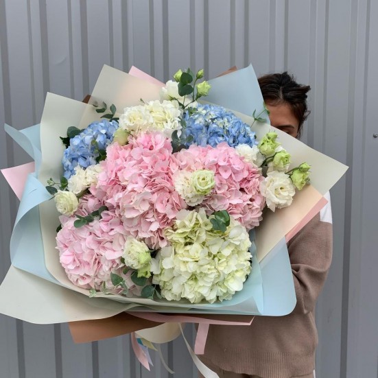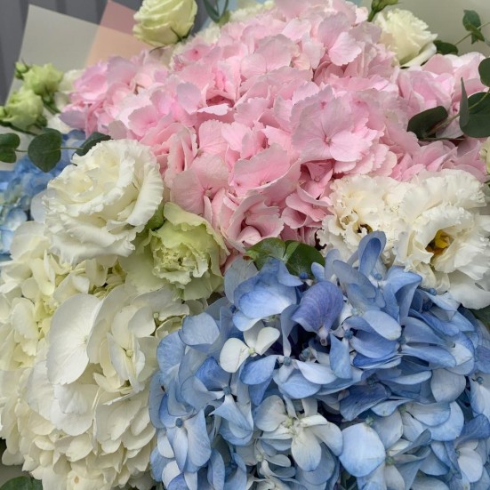 Букет с гортензией и эустомой в Электростали