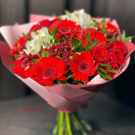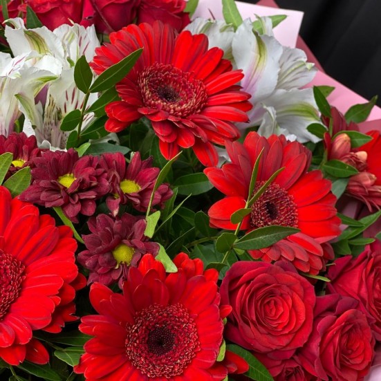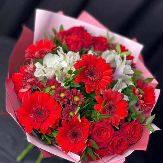 В этот раз выбрали букет из красных роз и белых лилий, привезли через полчаса. Букет шикарен, невероятный аромат!