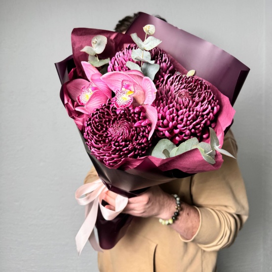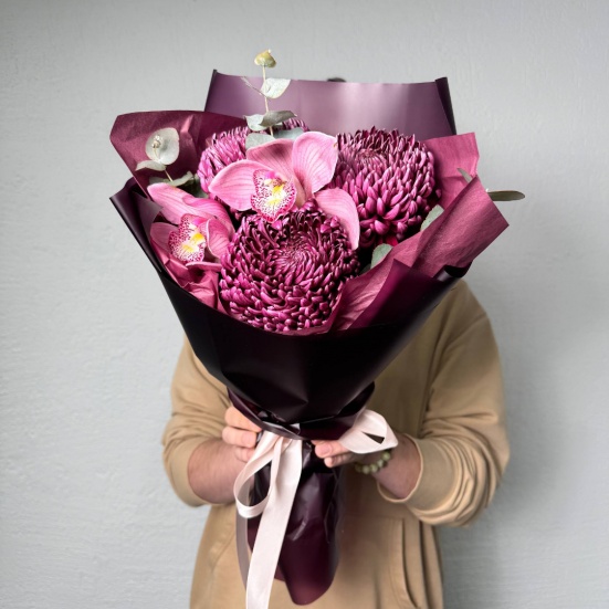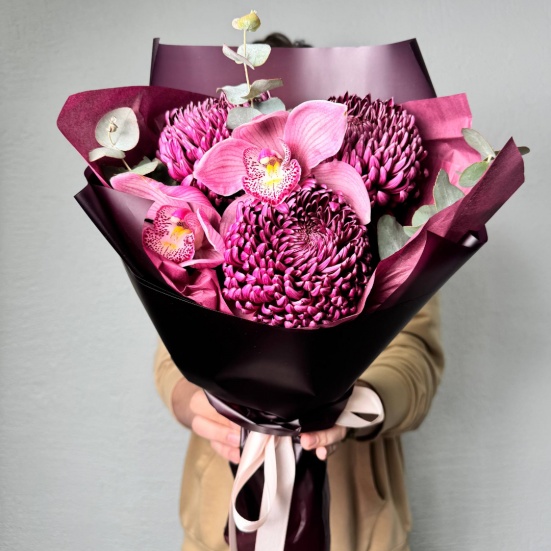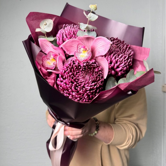Букет из хризантем Бигуди и Орхидей в Электростали