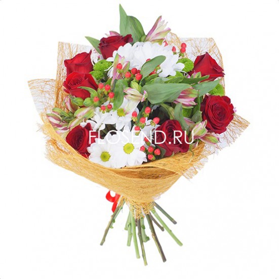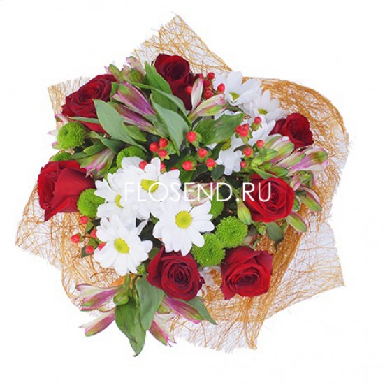 Букет из красных роз и альстромерий