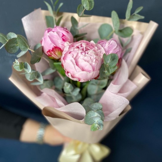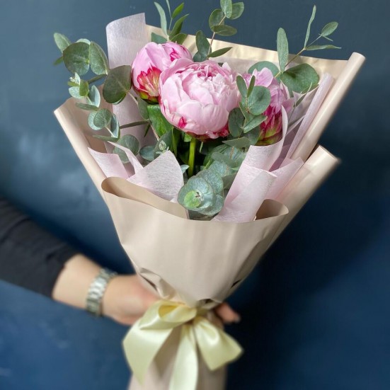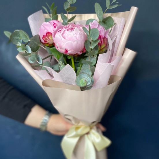 Букет «Пионы с эвкалиптом»