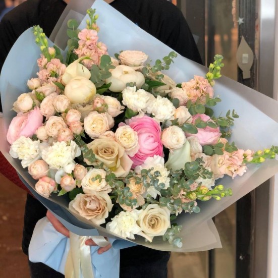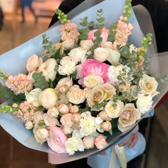Букет «Пионовидные розы и ранункулюсы» в Электростали