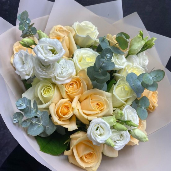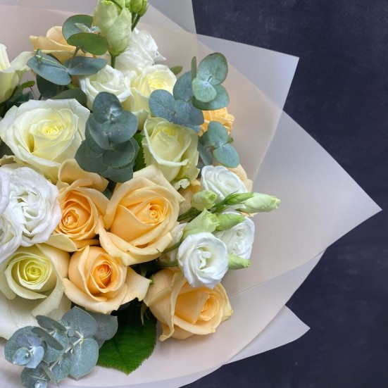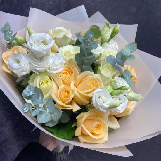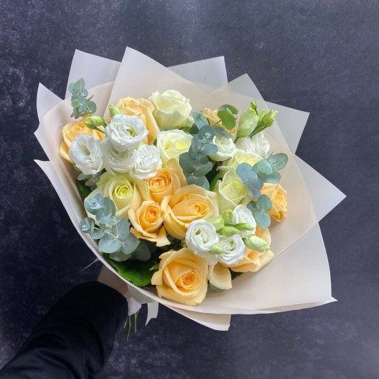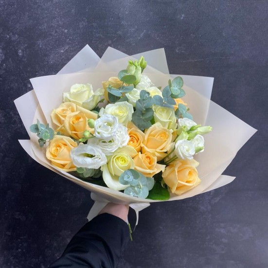 Букет отличный, все цветочки свежие, не мятые. Упаковано аккуратно и красиво, я довольна!