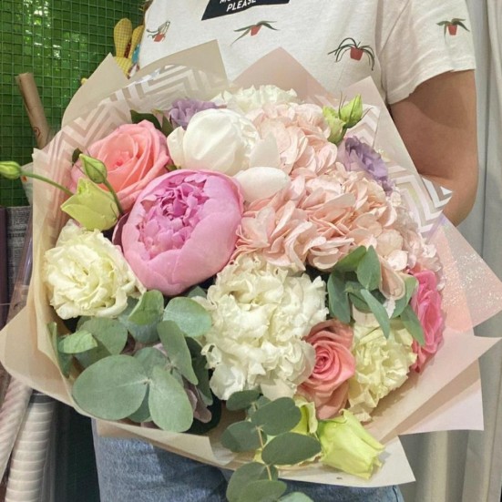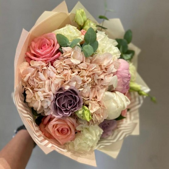 Букет «Розы, пионы, гортензия»