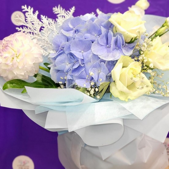 Букет отличный, все цветочки свежие, не мятые. Упаковано аккуратно и красиво, я довольна!